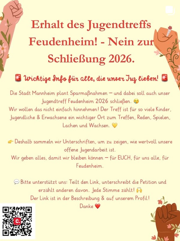 Die Stadt Mannheim plant den Jugendtreff Feudenheim Ende 2025 zu schließen!