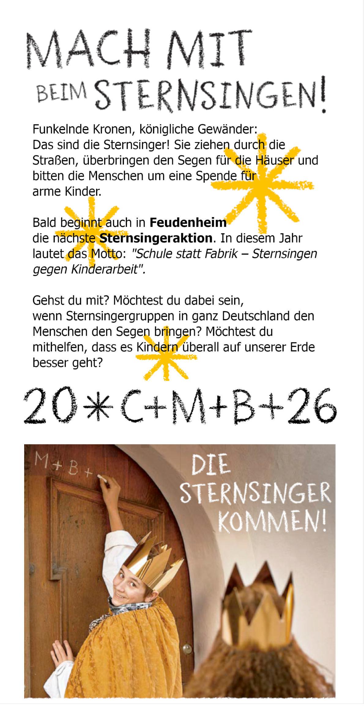 Bald ist es wieder soweit: Die Sternsingeraktion steht vor der Tür – und wir würden uns riesig freuen, wenn du auch dieses Jahr wieder dabei bist!