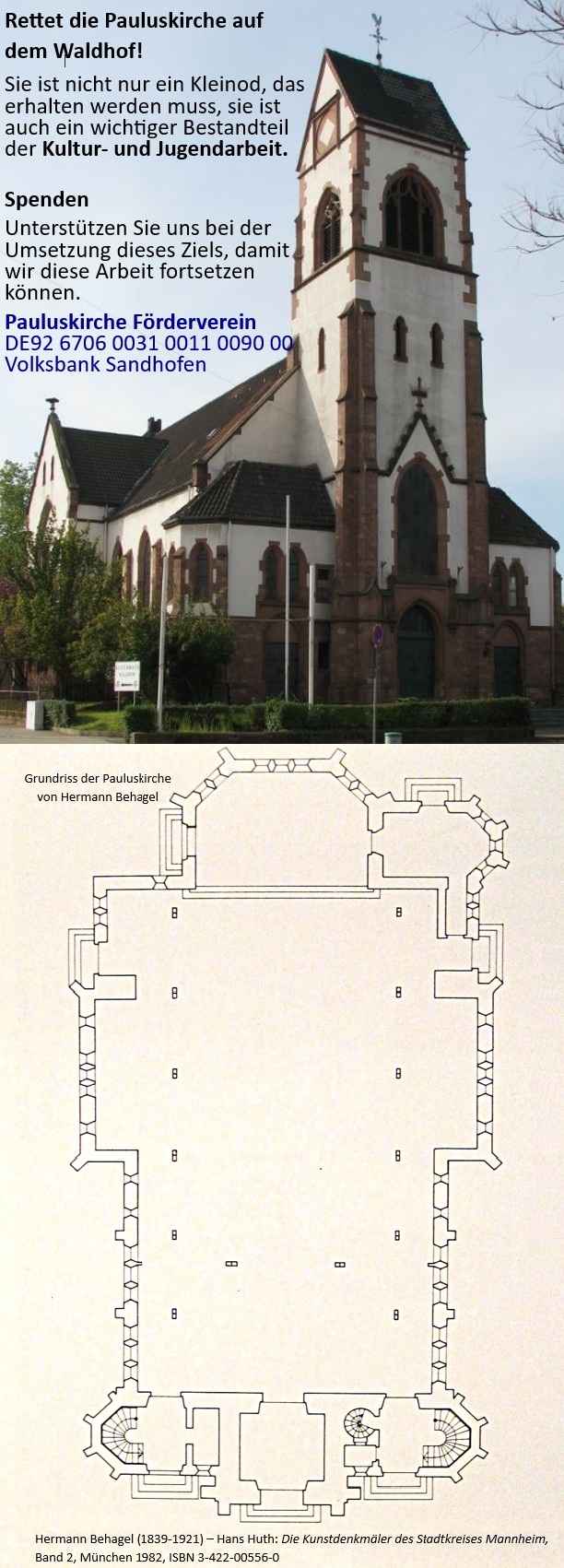 Aus aktuellem Anlass bittet der Förderverein Pauluskirche e.V. um Ihre Unterstützung! Zwei wichtige Projekte zur Erhaltung der Pauluskirche auf dem Waldhof werden gerade ins Leben gerufen: