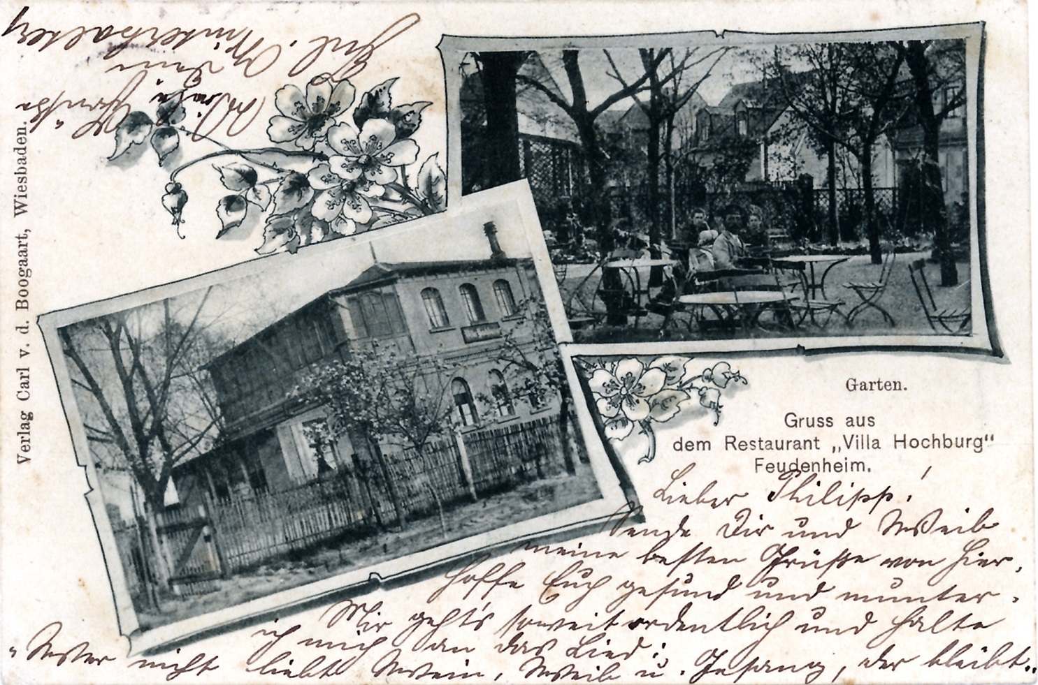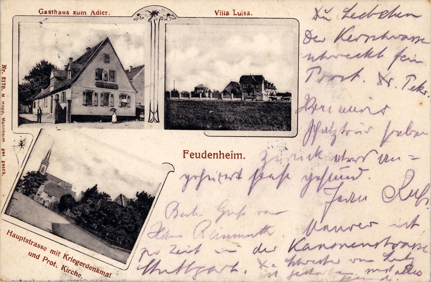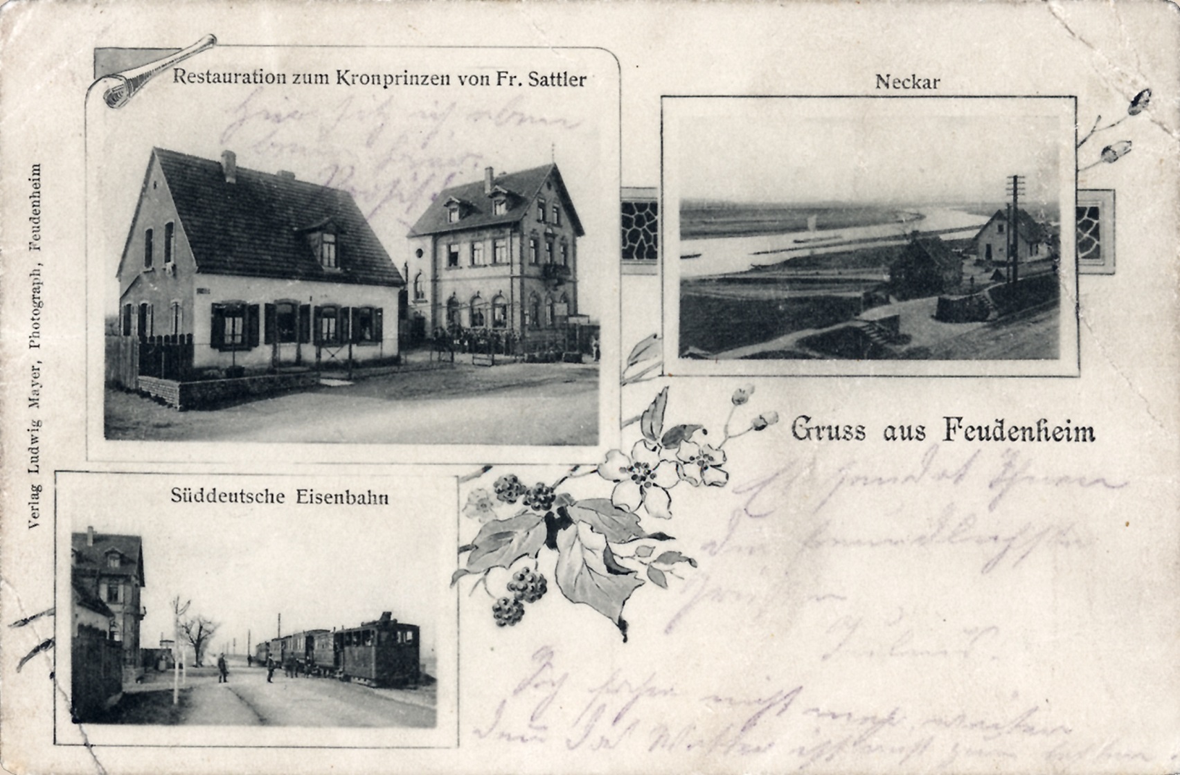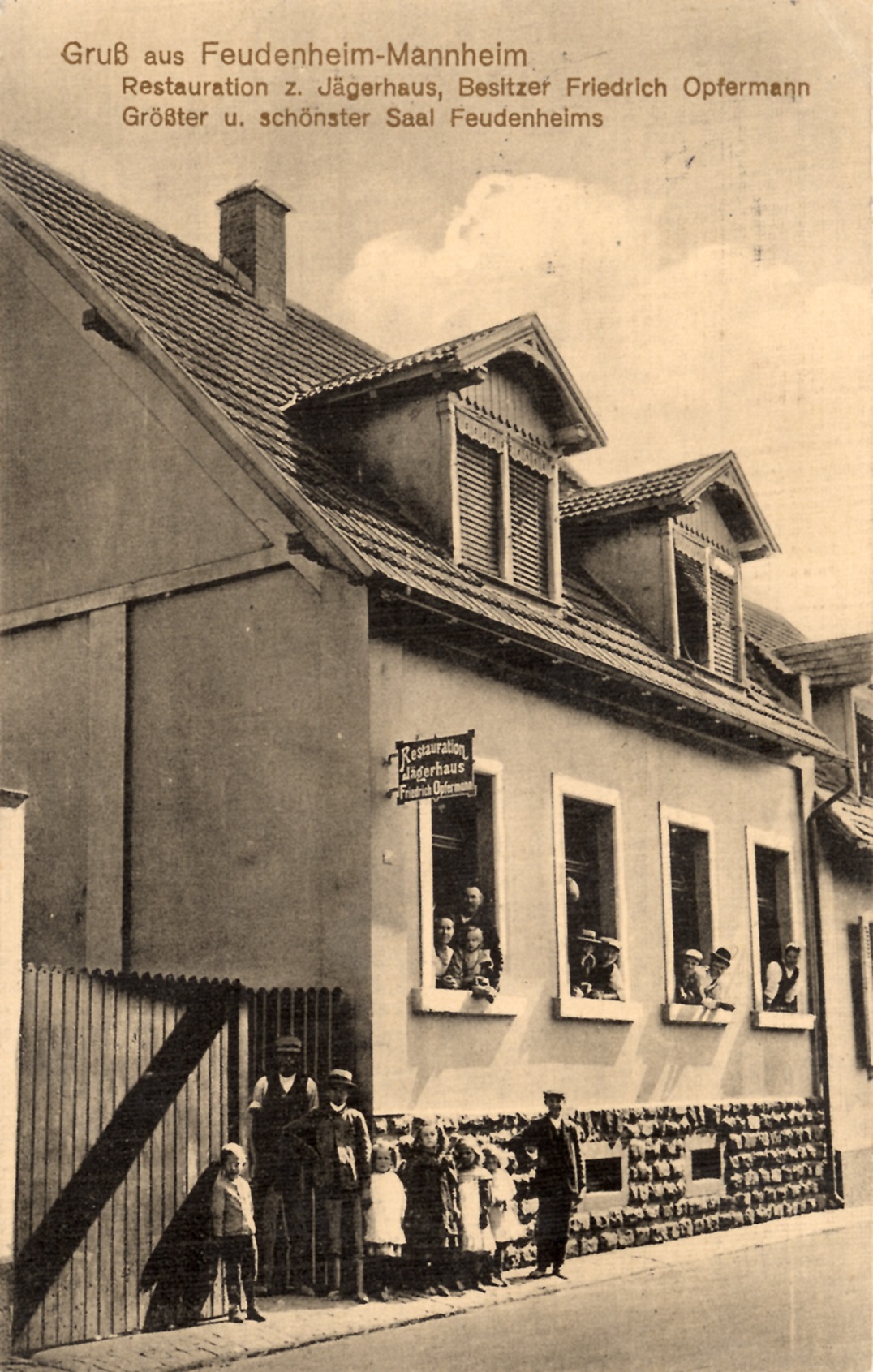 Die Postkarten bildeten nach der Etablierung der Briefmarken und der Post ein einfaches Mittel, um seinen Liebsten in der Ferne Nachrichten zukommen zu lassen und dabei ein Bild mitzusenden. Und wie heute auch, nahm man natürlich Bilder von Orten, an denen man es sich gutgehen lassen konnte. Dazu gehörten natürlich vor allem die Gaststätten. Man konnte auch Menschen in größerer Entfernung zeigen, wo man gewesen war. Die Reisedauer der Nachricht war dabei eine etwas andere: eine Postkarte von Feudenheim nach Rio de Janeiro wurde um 1910 zunächst mit dem Postzug nach Bremen gebracht und dort über den Außenhafen mittels Schiff nach Brasilien weitertransportiert.