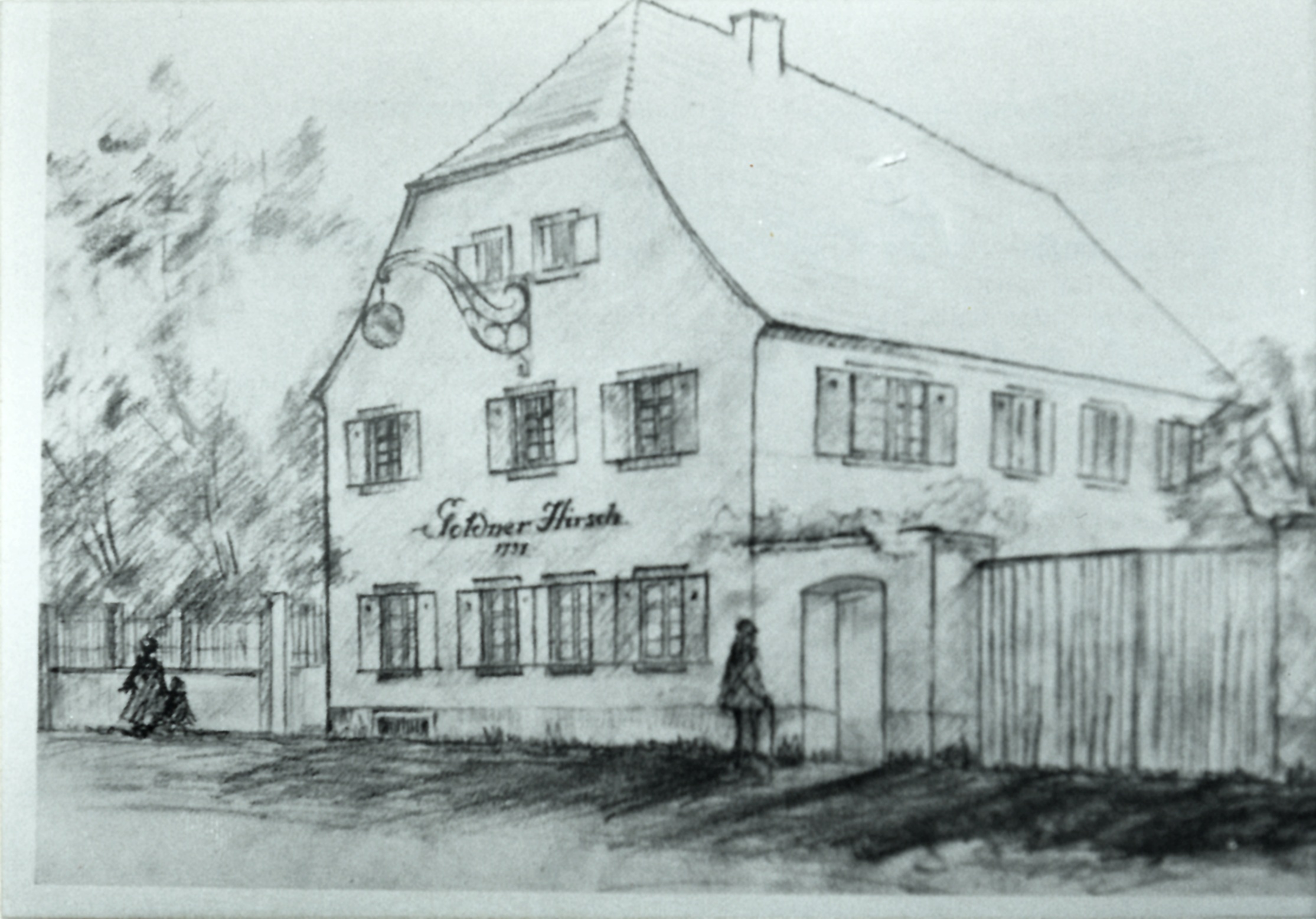 Zwischen 1650 und 1700 findet sich Quellenmaterial, in denen 1650 der Der Grüne Baum (Steuerbuch), 1658 Der Adler (Kirchenbuch) und Der Falke (Schildgerechtigkeit des Besitzers) genannt werden. Zwischen 1722 und 1738 werden in der Steuerveranlagung die Gasthäuser Zur Sonne, Zu den drei Königen, Zum Ochsen, der Pflug, der Goldene Hirsch und der Goldene Adler, bis 1868 noch der Goldene Stern und die Goldene Krone gelistet. (s. a. M. Caroli, Feudenheim – illustrierte Geschichte eines Mannheimer Vorortes, 1992, ab S. 162).